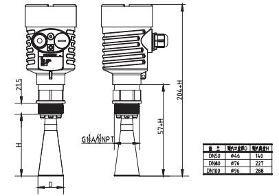 SKD5喇叭口雷達(dá)物位計 SKD56喇叭口雷達(dá)物位計測量最大距離可達(dá)30米。天線被進(jìn)一步優(yōu)化處理,新型的快速的微處理器可以進(jìn)行更高速率的信號分析處理,使得儀表可以用于如:反應(yīng)釜或固體料倉非常復(fù)雜的測量條件。 原理 喇叭口雷達(dá)物位計天線發(fā)射較窄的微波脈沖,經(jīng)天線向下傳輸,微波接觸到被測介質(zhì)表面后被反射回來,再次被天線系統(tǒng)接收并將其傳輸給電子線路部分自動轉(zhuǎn)換成物位信號。(因為微波傳播速度極快,電磁波到達(dá)目標(biāo)并經(jīng)反射返回接收器這一來回所用的時間幾乎是瞬間的) SKD56喇叭口雷達(dá)物位計參數(shù) 應(yīng) 用:耐溫、耐壓、輕微腐蝕的液體、固體 測量范圍:30米 過程連接:螺紋、法蘭 介質(zhì)溫度:-40~80℃;-40~130℃ -60~250℃;-60~1000℃ 過程壓力:-0.1~4MPa 精 度:±5mm 頻率范圍:26GHz 防爆等級:Exb IIBT4 Gb 防護(hù)等級:IP67 信號輸出:4~20mA/HART(兩線/四線) SKD56喇叭口雷達(dá)物位計外形尺寸圖 ![]() SKD56喇叭口雷達(dá)物位計安裝 ![]() SKD56喇叭口雷達(dá)物位計選型