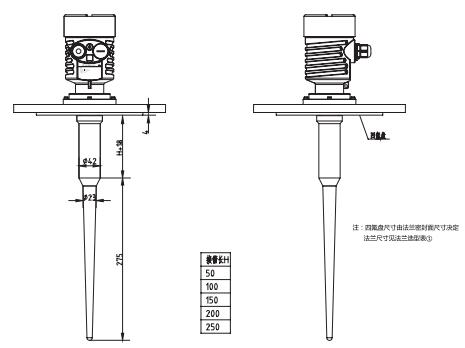 SKD52防腐棒式雷達(dá)物位計(jì)外型尺寸圖