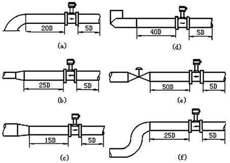 圖5 渦街流量計(jì)對(duì)上、下游直管段長(zhǎng)度的要求