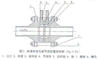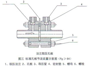 屬標準孔板。取壓方式為管道取壓。上游取壓孔中心位于孔板前面一倍管道內(nèi)徑處。下游取壓孔中心位于距離孔板后端為管道內(nèi)徑一半的地方。