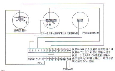 注意:渦街流量計輸出信號不能為開方,為比例電流,渦街量程必須設定為體積流量。