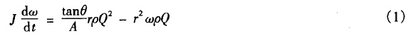 渦輪流量計(jì)以動(dòng)量矩守恒定理為基礎(chǔ)的一種速度式流量?jī)x表,對(duì)非穩(wěn)定流由于轉(zhuǎn)子葉片和相關(guān)傳動(dòng)裝置的共振、轉(zhuǎn)子的轉(zhuǎn)動(dòng)慣量、脈動(dòng)的形狀、轉(zhuǎn)子和齒輪摩擦阻力及轉(zhuǎn)子瞬時(shí)轉(zhuǎn)矩等因素影響,使渦輪流量計(jì)產(chǎn)生很大的誤差,用機(jī)翼理論來分析作用在轉(zhuǎn)子上的驅(qū)動(dòng)力矩和阻力矩,可得到其運(yùn)動(dòng)方程: