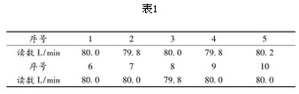 1 前言 目前,工業(yè)領(lǐng)域面臨著能源過度的問題,節(jié)能減排已成為大型生產(chǎn)企業(yè)急需解決的課題。流量計作為生產(chǎn)線的重要計量器具,不僅是直接反映生產(chǎn)能耗的基礎(chǔ)設(shè)備,也是控制能耗的首要環(huán)節(jié)。由于生產(chǎn)計劃,許多企業(yè)的流量計無法被卸下而需要在線校準。超聲波流量計作為一種精度高、非接觸式、易攜帶安裝的計量器具,廣泛被應(yīng)用于流量計的在線校準。因此,本文介紹如何應(yīng)用超聲波流量計在線校準浮子流量計并對其過程進行測量不確定度的評定。 2 超聲波流量計工作原理 超聲波在流體中的傳播速度與流體的流速有關(guān)。沿流體的順流方向,超聲波的傳播速度增大;逆流方向的傳播速度減小。同一超聲波沿流體不同流向產(chǎn)生了時間差,該差值與流體的流速存在一定的關(guān)系。假設(shè)直段管道內(nèi)有2個超聲波傳感器,傳感器1位于流體上游,傳感器2位于流體下游,則傳感器之間存在如下關(guān)系: (1) (2) 式中:L—兩個超聲波傳感器之間的直線距離; T12—沿流體逆向,超聲波從傳感器1傳播至傳感器2所用的時間; T21—沿流體順向,超聲波從傳感器2傳播至傳感器1所用的時間; C—超聲波在靜止流體中的傳播速度; x—L在管道中沿管道軸向的分量。 根據(jù)上式可知:當傳感器的位置和管道幾何參數(shù)為已知量,則流體的流速正比于時間項。 3 浮子流量計在線測量 3.1 校準環(huán)境與安裝條件 超聲波流量計是根據(jù)超聲波在管道內(nèi)傳播時間差反映流體流速的,所以被測段的流體狀態(tài)對測量結(jié)果影響很大。測量時,應(yīng)避免被測段的流體處于湍流狀態(tài)。一般應(yīng)注意以下幾點: (1)計量現(xiàn)場應(yīng)無明顯振動,周圍無電磁干擾。 (2)探測器安裝位置的上游直管段長度至少為管徑的10倍以上,下游的直管段長度至少為管徑的5倍以上;上游30倍管徑的沿程內(nèi)應(yīng)沒有擾流因素,比如泵、閥引起的流速分布不均勻。 (3)管道始終充滿流體,流體內(nèi)不能含有大量的氣泡或異物。 (4)對于水瓶管道,為了避免滯留空氣或沉積物影響測量結(jié)果,在水平面的±45°內(nèi)安裝探測器。避免將探測器安裝在管道變形、凸起或焊接部分。 (5)如管道表面有涂層、腐蝕班或是不平整,用油漆稀釋劑和砂紙清除。 (6)查看被檢的浮子流量計是否有泄漏、振動的情況,刻度是否清晰,便于觀察。 (7)對于1.0和1.5級的浮子流量計,安裝傾斜角度不應(yīng)超過2°;2.5級及以下的浮子流量計不應(yīng)超過5°。 3.2 探測法的選擇 根據(jù)探測器的分布位置,探測法分為V法和Z法。V法:兩探測器均處于管道外同側(cè),探測器之間連線與管道軸線平行。Z法:兩探測器處于管道外兩側(cè),兩探測器之間連線與管道軸線交叉。在下列情況下使用Z法: (1)需要節(jié)省安裝空間(Z法的安裝空間約為V法的一半)。 (2)需要測量污水等渾濁的流體。 (3)管道內(nèi)有砂漿襯里或是較厚水垢。 3.3 測量步驟 (1)確認管道的內(nèi)、外徑;對于非標準的管道,用游標卡尺和測厚儀等工具測量管道的外徑與壁厚。 (2)在儀表中輸入相關(guān)參數(shù):管道內(nèi)、外徑;管道材料;流體介質(zhì);探測法類型等。 (3)待儀表調(diào)零后確定探測器安裝距離。 (4)在探測器表面涂上適量硅脂,根據(jù)“安裝條件”安裝探測器,查看超聲波信號接受是否正常。 (5)待被檢流量計與超聲波流量計讀數(shù)穩(wěn)定后,讀取兩儀表的流量值,計算示值誤差。 3.4 注意事項 (1)當超聲波流量計信號異;蚴菬o信號時,查看管道表面是否有涂層、探測器是否緊貼管道表面。在排除上述問題但仍信號異常的情況下,查看現(xiàn)場周圍是否有電磁干擾,比如:大功率水泵、變頻器、變壓器等。 (2)當測量值與被檢示值存在明顯偏差時,查看探測器安裝位置是否合理。在滿足安裝條件的情況下,盡可能對安裝位置做調(diào)整:同一條管道布置有高低時,探測器安裝在較低的管路上;探測器盡量不要靠近管路的終端;盡量選擇流體向上流動的管路安裝探測器;管路內(nèi)結(jié)垢嚴重,更換管路。 (3)當測量值存在明顯波動時,適當設(shè)置阻尼參數(shù),延長響應(yīng)時間。 (4)當流量發(fā)生變化但測量值保持不變時,檢查管道規(guī)格是否正確;探測器是否安裝在焊接部分;探測器安裝尺寸是否正確;探測器表面是否涂有足夠的潤滑脂;嘗試更換探測法類型;避免使用加長電纜。 4 不確定度評定實例 本文利用超聲波流量計在線校準浮子流量計,流量范圍:(16~160)L/min,流體介質(zhì)為水。 4.1 測量模型 利用超聲波流量計在線計量浮子流量計,相當于采用標準表法進行計量。標準流量計和被檢流量計串聯(lián)在現(xiàn)有的流量管道上,刻度狀態(tài)相同,流量無需經(jīng)過修正。示值誤差根據(jù)下式: (3) 式中:qm—被檢浮子流量計的流量顯示值,L/min; qv—標準超聲波流量計的流量實際值,L/min; qmax—被校流量計的上限刻度值,L/min。 標準不確定度: 靈敏系數(shù):c1=1/qmax;c2=-1/qmax 4.2 不確定度的來源: (1)輸入量qm的不確定度 測量的重復性引入的不確定度:u(qm) 浮子流量計在80L/min時,對被檢流量計測量10次,結(jié)果如表1。 表1 測量平均值 ,標準方差S=0.13L/min,u(qm)= 。 (2)輸入量qv的不確定度: ①測量重復性或儀表分辨力引入的不確定度:u1(qv) 超聲波流量
