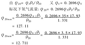 其流量上限FH應為金屬轉子流量計刻度上限所對應的標準狀態(tài)下的氧氣流量,因為金屬轉子流量計的刻度為標準狀態(tài)下空氣標注,所以必須將其轉換為標準狀態(tài)下氧氣流量。