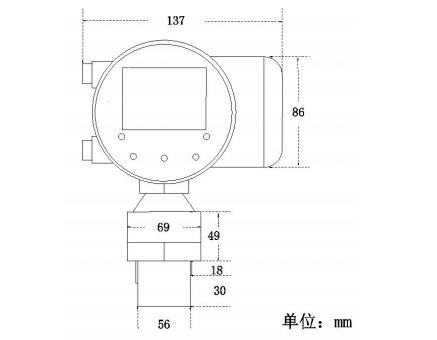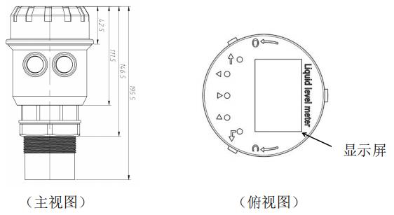 分體式由顯示儀表(二次儀表)和超聲波傳感器(一次表)兩部分組成,結(jié)構(gòu)如下(外觀尺寸見(jiàn)6.1.1):