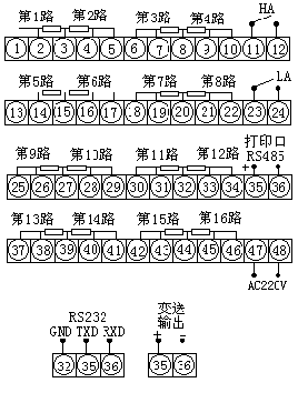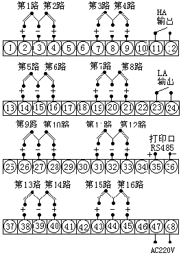 智能巡檢儀端子接線(輸入信號為熱電偶、電壓、電流)